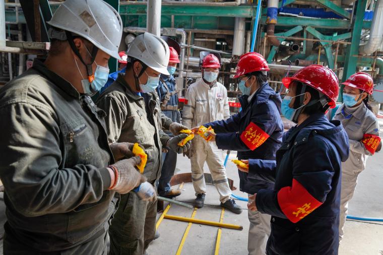 图为现场清静监护、清静作业票证举行检查。 。 。。。。。