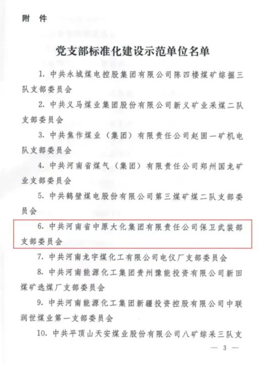 克日,,,, ,,,河南省政府国资委党委下发通知,,,, ,,,确定了全省100个第二批“省管企业党支部标准化建设树模单位”,,,, ,,,中原天博集团(中国)有限公司守卫武装部党支部榜上著名 。。。 。。。
